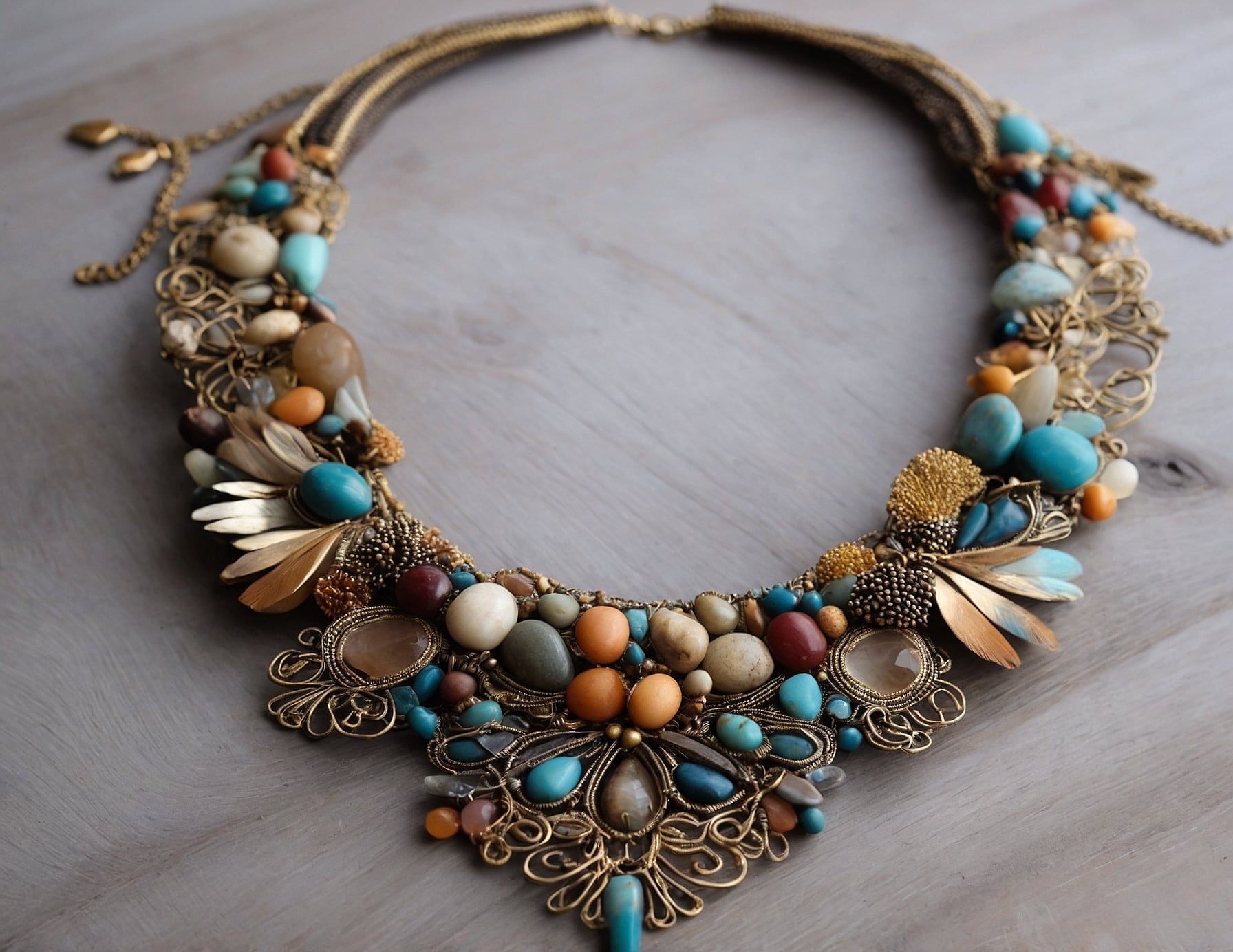Este collar artesanal es la fusión perfecta entre diseño y naturaleza. Con detalles meticulosamente elaborados, cada elemento de esta joya cuenta una historia. Ideal para aquellos que aprecian la exclusividad y el arte en su forma más pura. Una joya que realza cualquier estilo con su toque único e irrepetible.